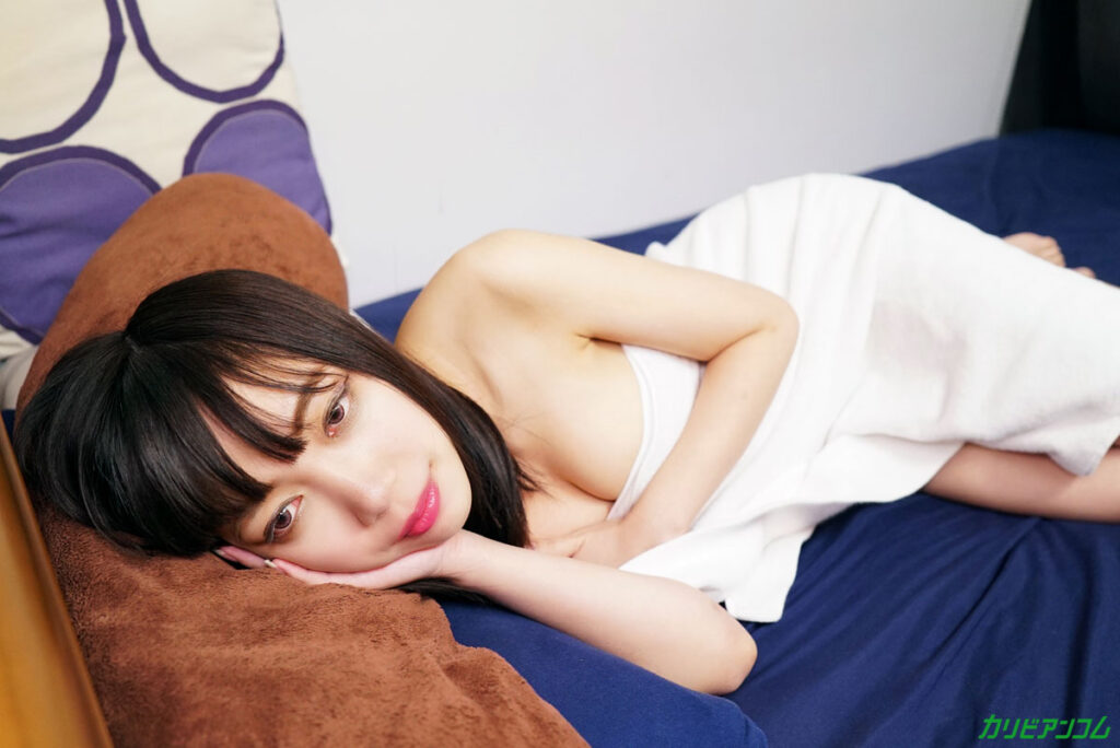 もっちりEカップ美乳スレンダーボディに、眼力が強いしっとり美人・みなみゆいが、玄関先にバスタオル一枚で誘惑!